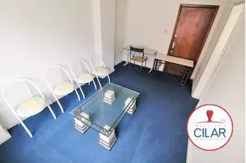 Com 100 m² de área privativa, essa sala comercial distribuída tem 5 ambientes para escritório, recepção, cozinha e banheiro.