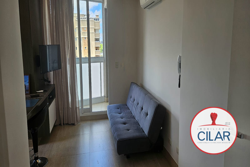 TOTALMENTE MOBILIADO (armários planejados, geladeira, micro-ondas, cooktop elétrico, mesa de refeições, cama de casal, Smart TV 32 polegadas, cortina, ar condicionado Split);